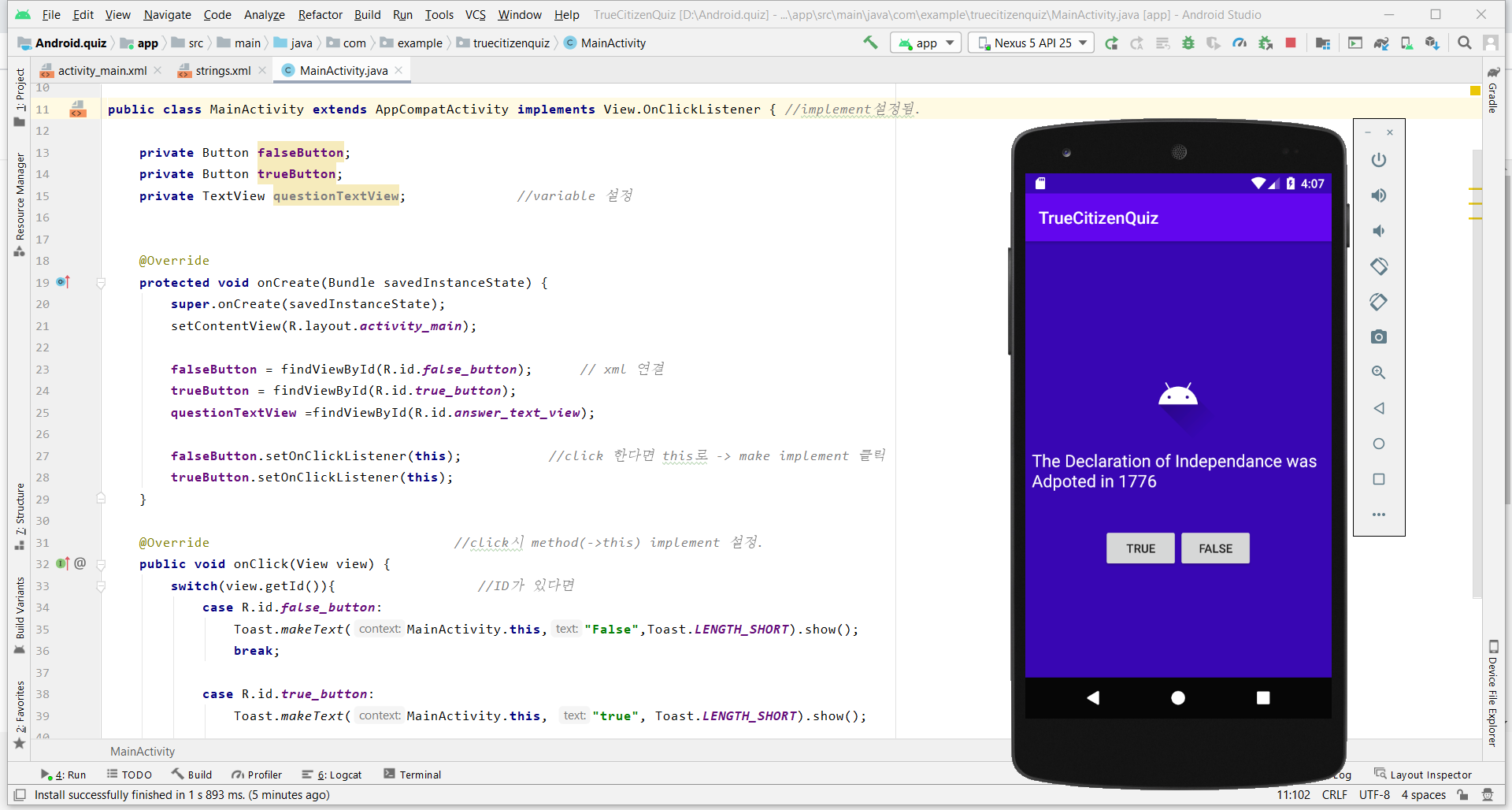 private TextView questionTextView; //variable 설정