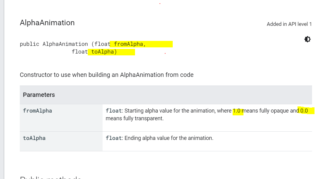 -public AlphaAnimation (float fromAlpha, float toAlpha)