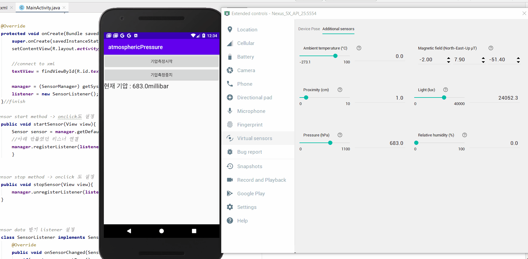 Sensor sensor = manager.getDefaultSensor(Sensor.TYPE_PRESSURE); //기압 센서