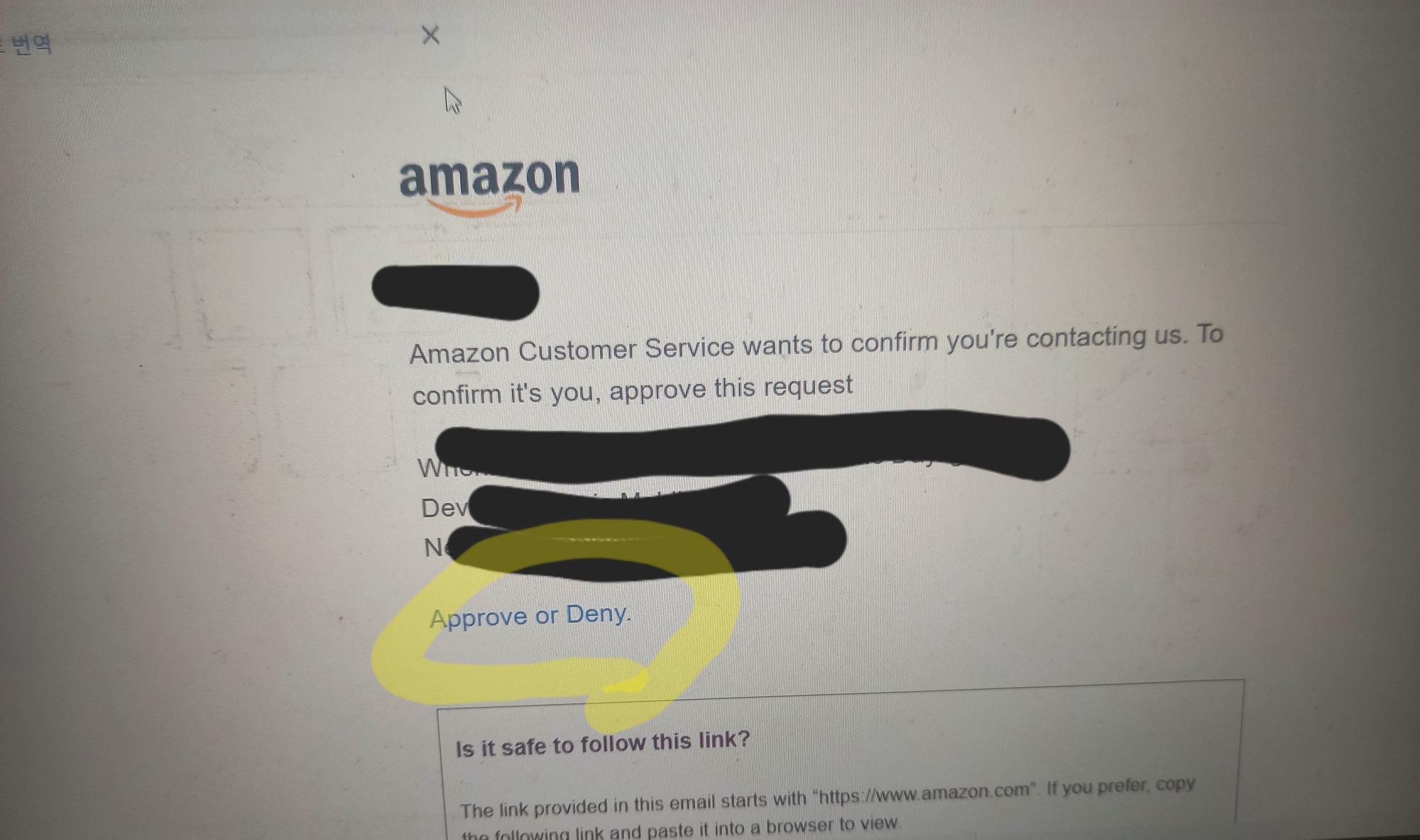 We noticed some unusual activity on your account. Please contact customer service. 이란 메세지와 함께 외국번호가 안내되어있었습니다.