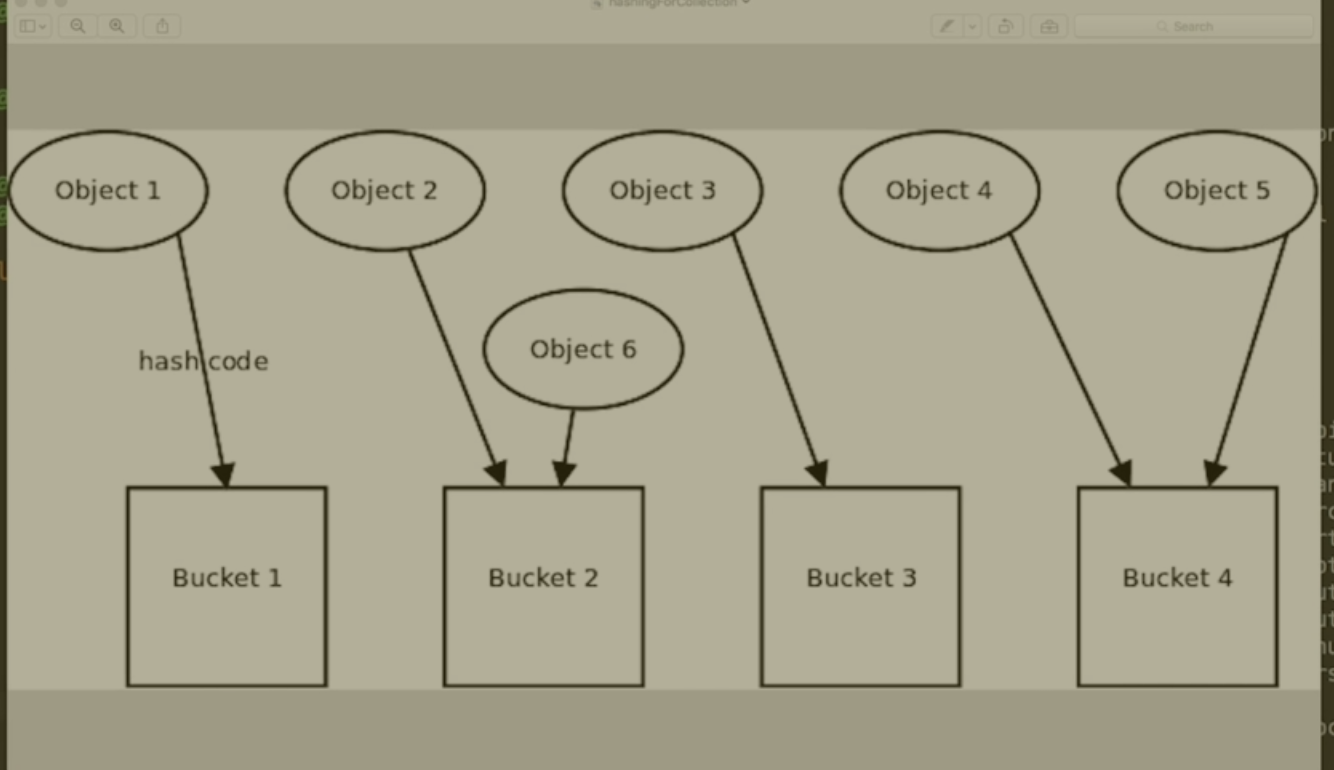 object1, objec2는 hashcode를 통해 bucket2를 향한다.