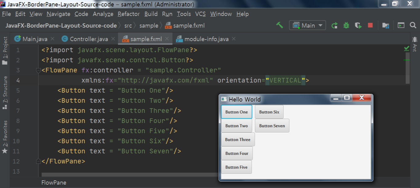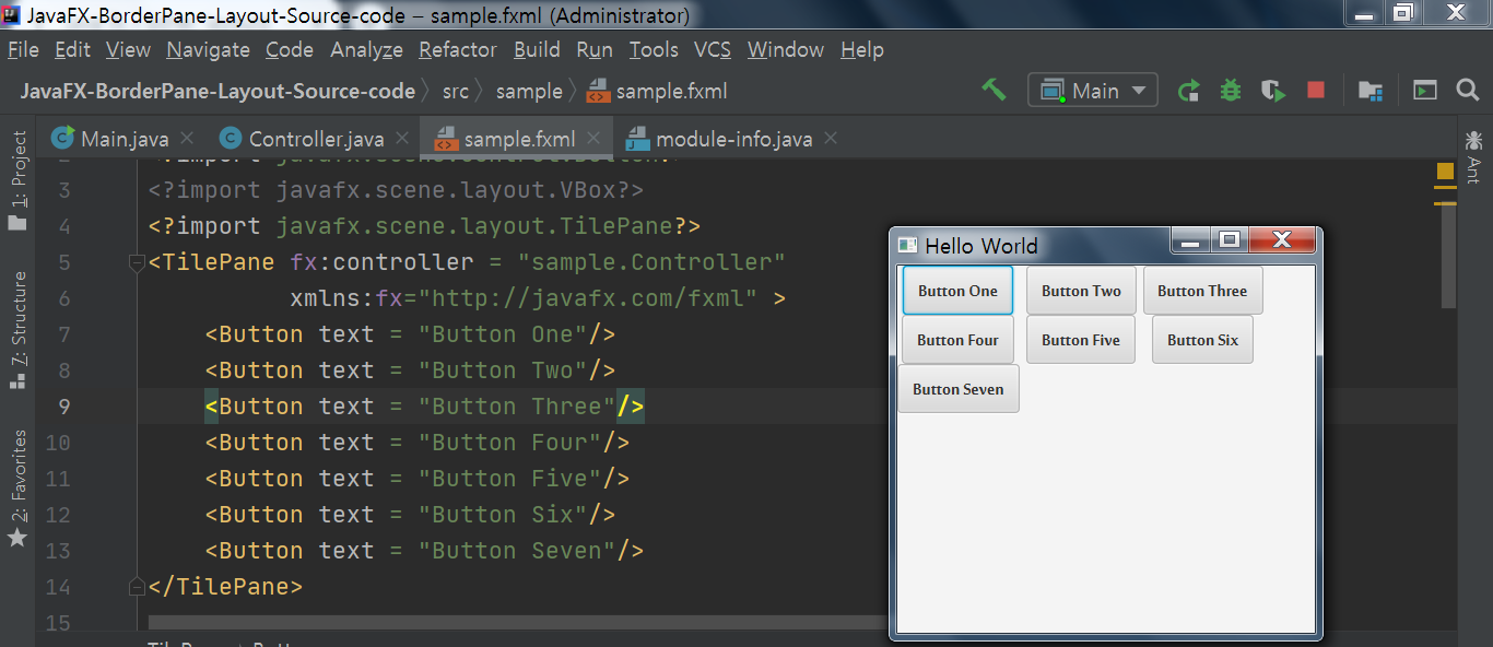 -Tile pane layout : same width (every cell), there are gap between every button, button의 글씨 가운데 정렬