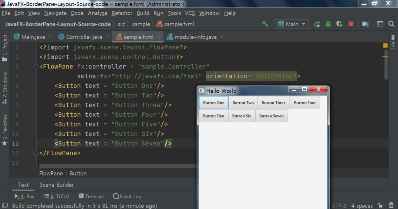 <FlowPane fx:controller = "sample.Controller"